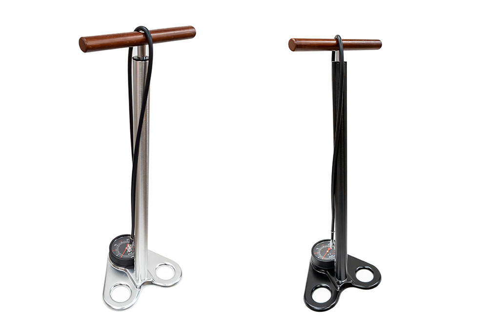 台湾の高品質ポンプメーカー「AIRSMITH」からハイボリュームフロアポンプのラインナップを発売。エア圧は最大で80psiだが、一度のポンピングで大量のエアを送り込むことができるので、エアボリュームの大きいMTBタイヤに少ないポンピングでエア充填が可能。ハンドル部分は大型で力を入れやすく頑丈な作りとなっている。