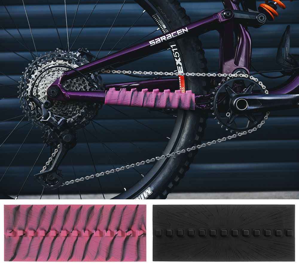 DYEDBRO シュッシュ チェーンステープロテクターは、チェーンのバタつきや繰り返しの衝撃によるフレームへの傷を防ぐように設計されているだけでなく、騒音と振動を劇的に低減させるプロテクター。チェーンのバタつきを抑えることで、より静かでスムーズなためライダーはトレイルに集中することができる。 強力な3M™製粘着シートを使用し、素早く確実な取り付けが可能。あらゆるメーカー、モデル、フレームサイズのマウンテンバイクに対応する。